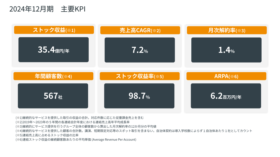 2024年12月期において、ストック収益35億4,000万円(年)、ストック収益率は98.7%と高い水準となっています。
