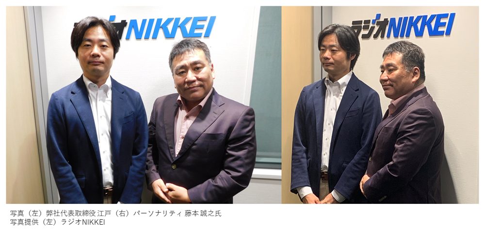 “相場の福の神“こと藤本 誠之氏がパーソナリティを務めるラジオNIKKEIのコーナー「この企業に注目!相場の福の神」に、代表取締役 江戸 浩樹がゲスト出演しました。