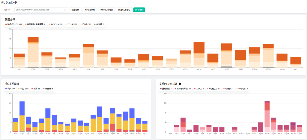 バズやリスクの兆候と見られる投稿を効率的に検知できるため、迅速に適切な初動対応が可能となります。