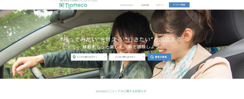 (正規公式サイト(https://notteco.jp/)のトップ画面)